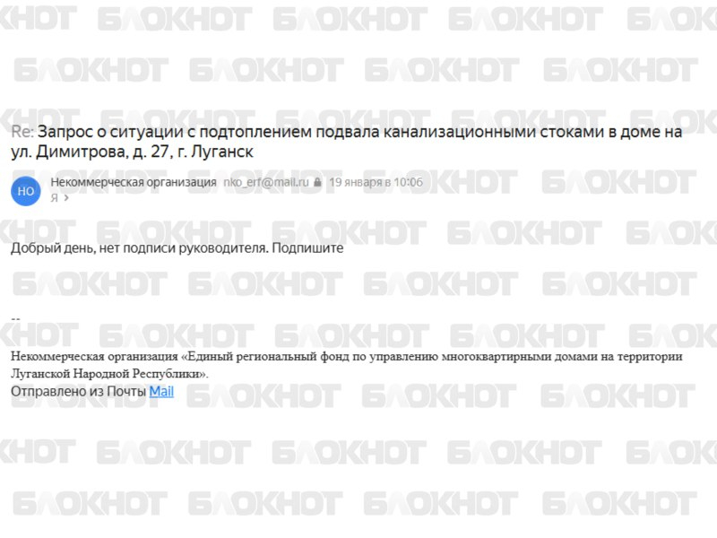 Ранее "Блокнот Луганск" писал, что на Димитрова в Луганске подвал затапливает фекалиями. Мы подготовили запрос в Жилстройнадзор ЛНР, но чиновники упорно не хотят регистрировать обращение, ссылаясь на неправильное оформление бумаги.