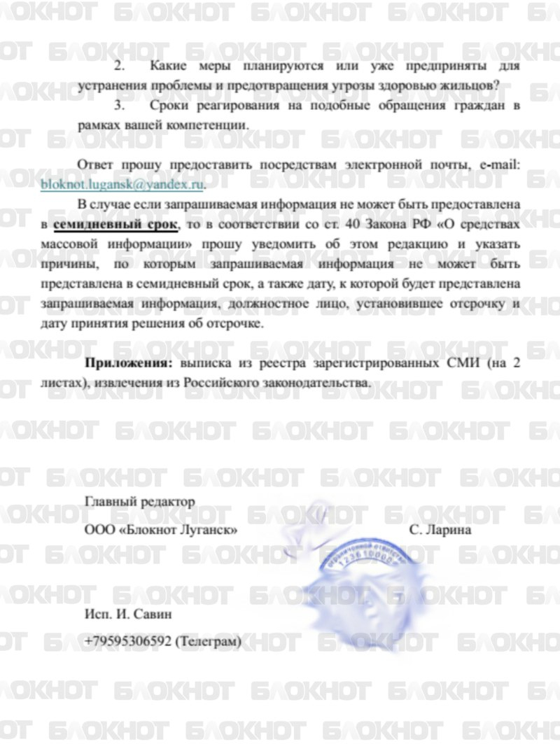 Написать в чат-бот «Блокнот Луганск»